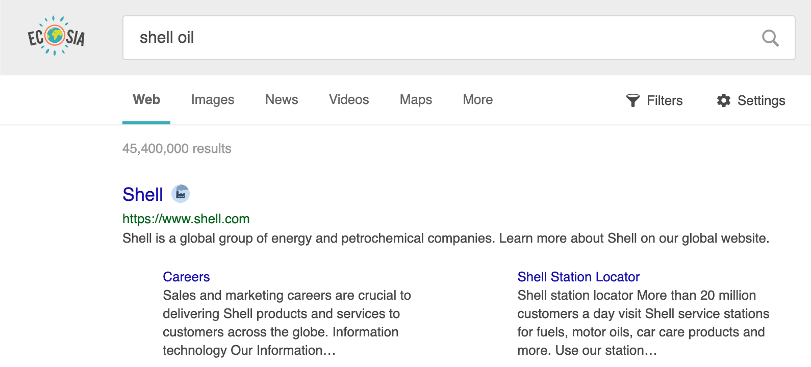 The Guardian, in collaboration with the Climate Accountability Institute, has revealed that 20 fossil fuel companies have been at the center of the climate crisis. Ecosia will highlight these firms (along with several other culprits) with a fossil fuel plant icon: