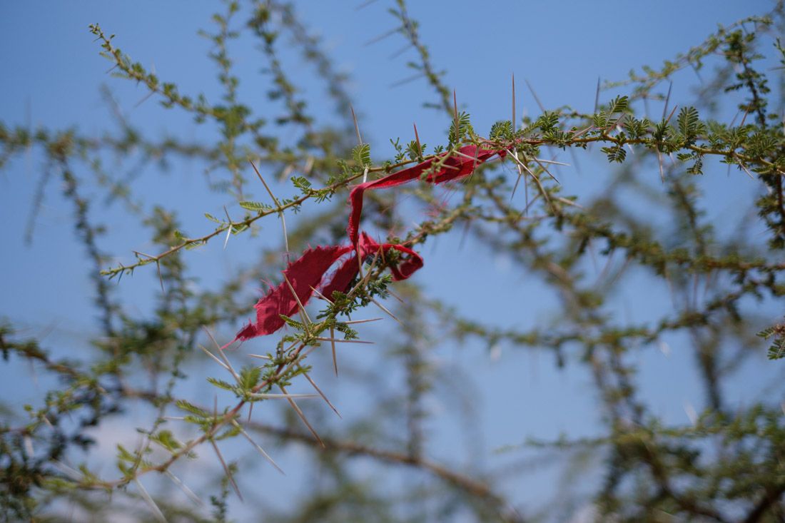 Members of the community add a ribbon to the trees they’ve pruned so everyone knows to protect them.