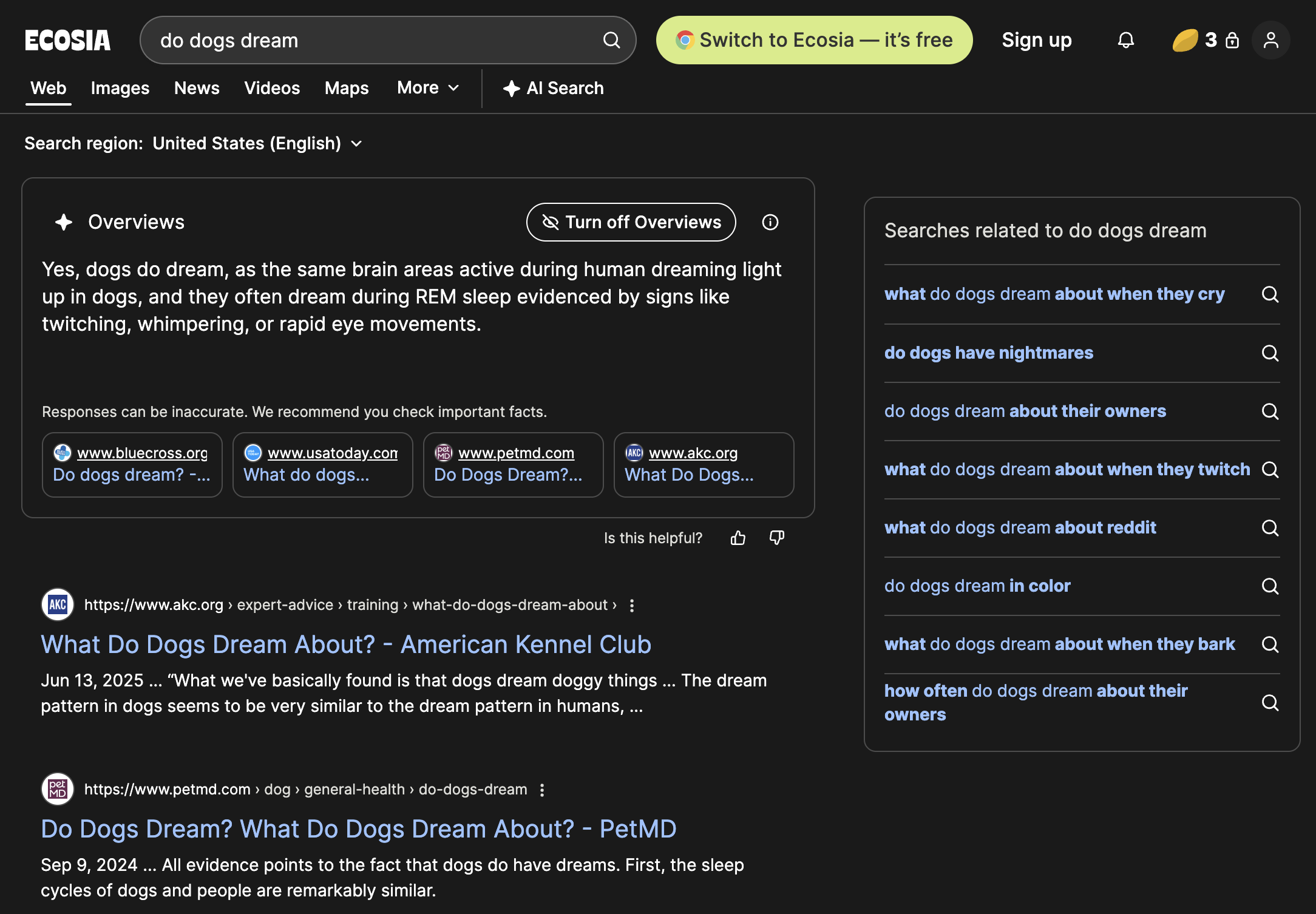Overviews give you a quick summary at the top of your search results, always with citations so you can explore the original sources yourself.
