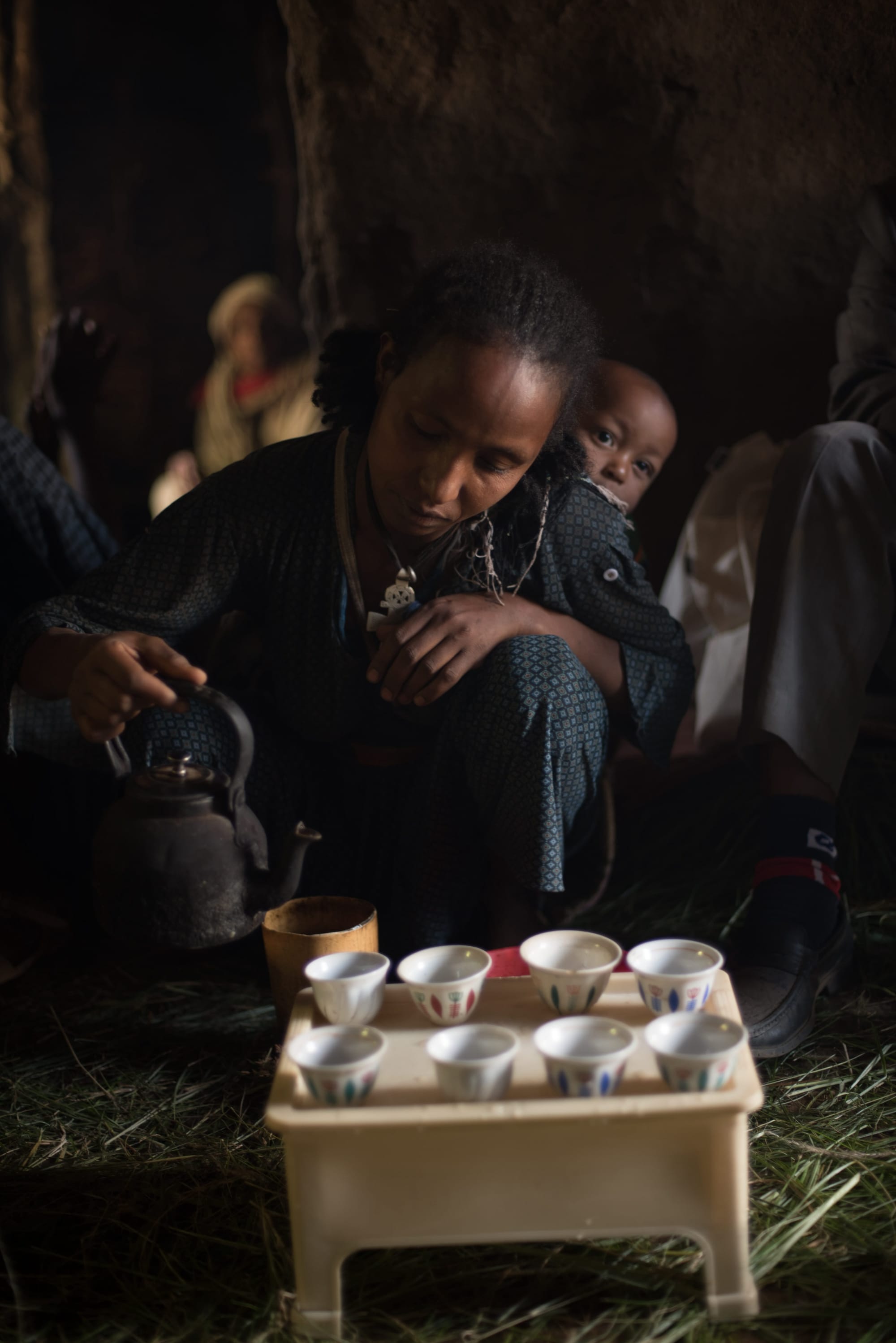 Pouring coffee in Ethiopia; Safa coffee farmer Almaz with her harvest; Coffee seedlings at a nursery in Ethopia; Planting coffee in Nona Benja