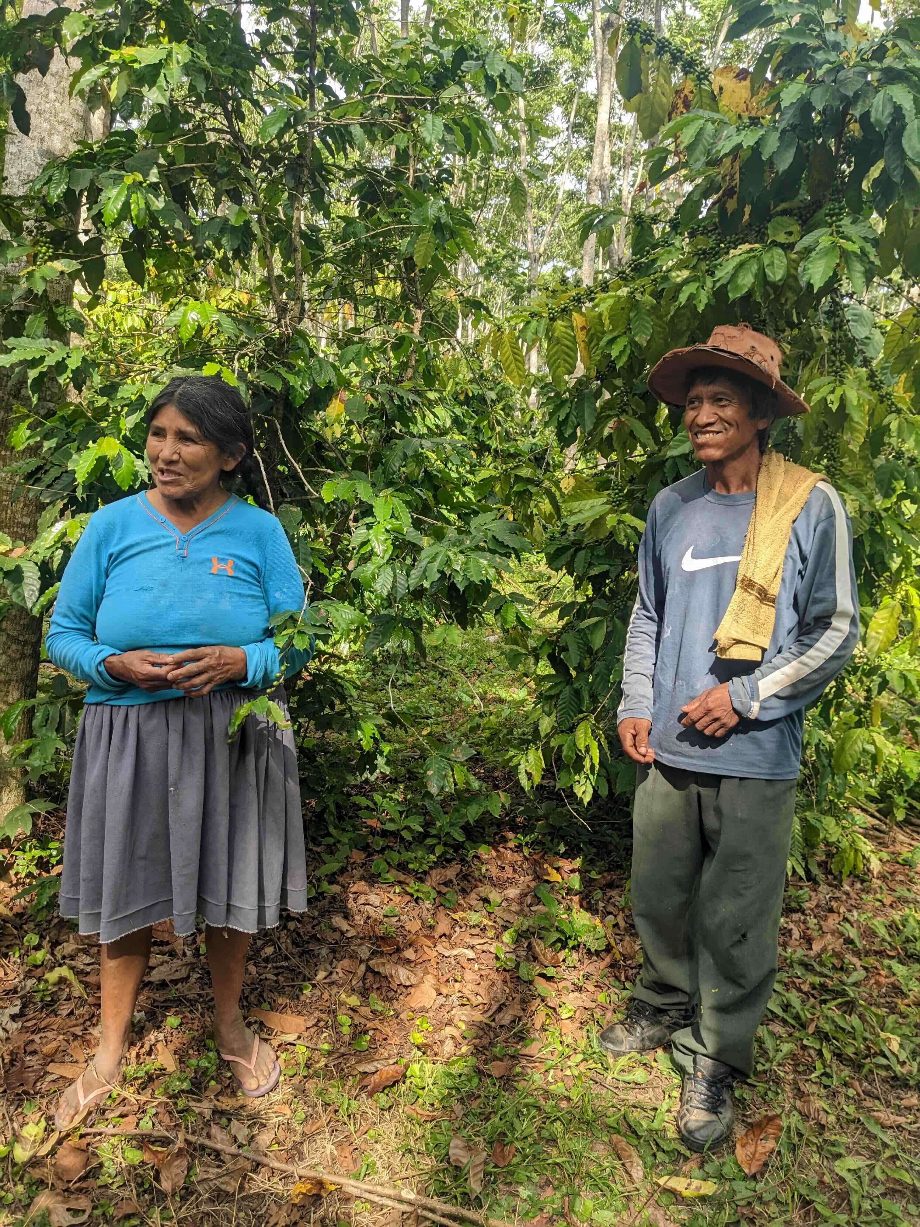 Victoria and Francisco Vique - specialty coffee producers in Bolivia; Coffee beans from Victoria and Francisco’s plot; Sicirec coffee producer Dona Maria with her crop; Coffee trees intercropped with shade trees