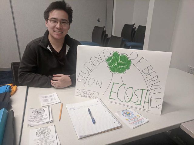 At UC Berkeley, Aviel McDermott and Chris Schenkel have been telling students about Ecosia in the campus’ environmental resource centre. The grassroots campaign has already planted over 125 trees by encouraging students to download Ecosia. This term their plan is to contact the student newspaper and raise awareness of their aim to make Ecosia the university’s default search engine.
