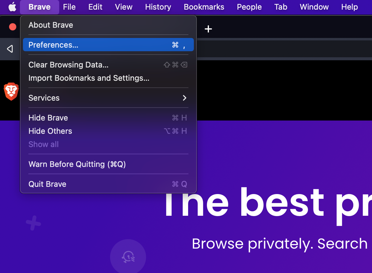 If you're using Brave, open your Preferences (alternatively, you can also navigate to brave://settings/search).