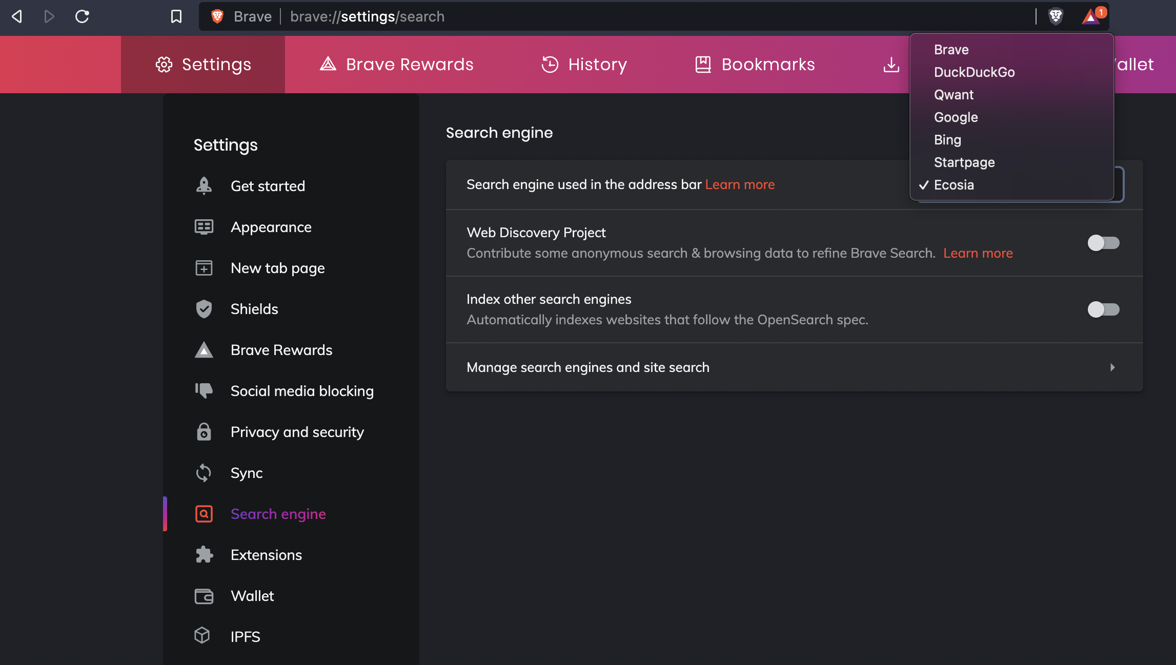 Ecosia on Brave