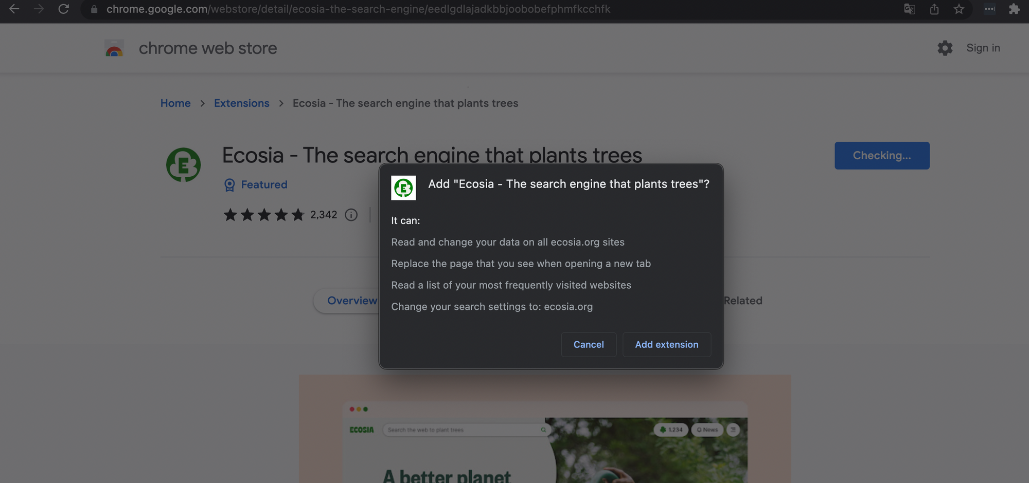 It’s easy to add Ecosia to Chrome. All you have to do is download our extension.