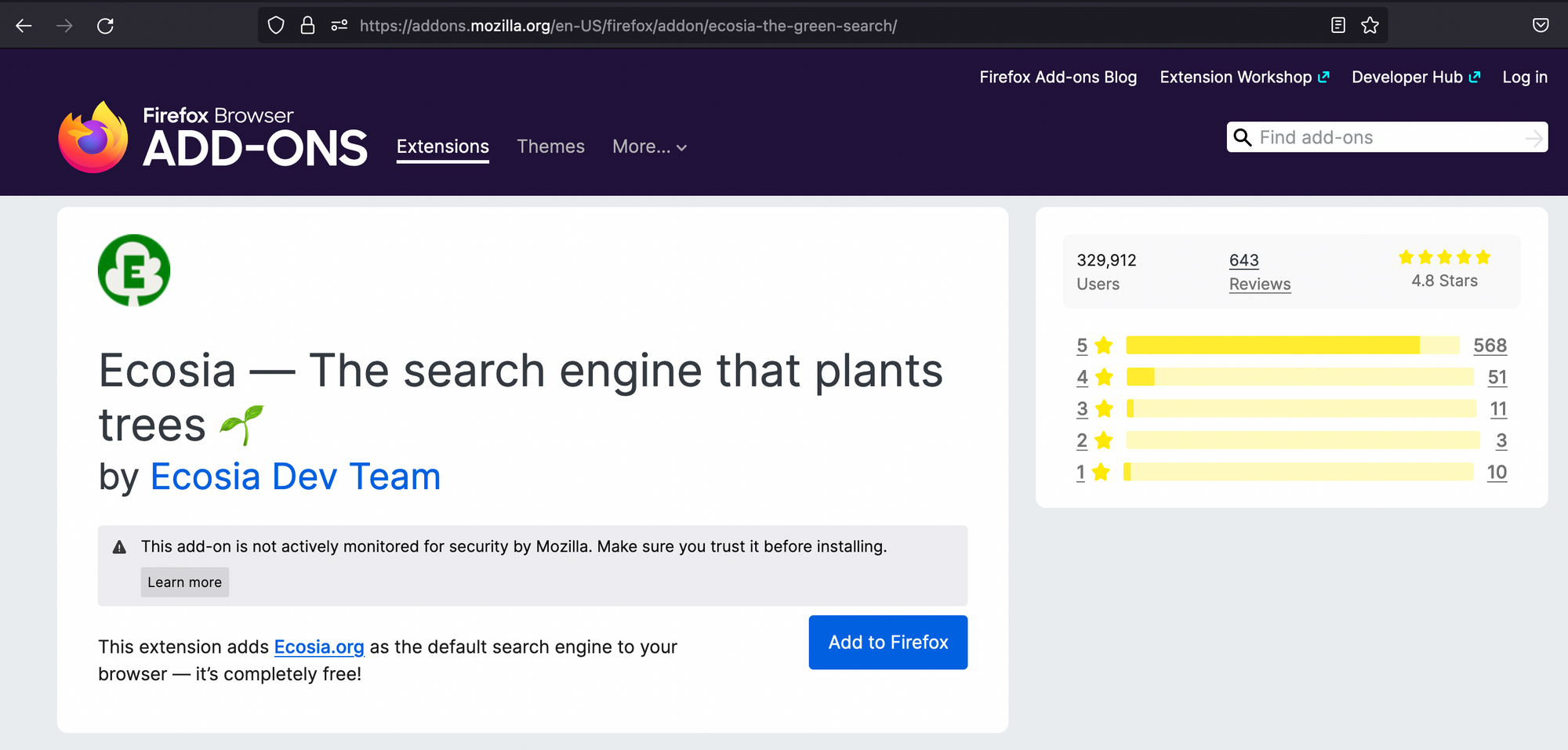 Ecosia on Firefox
