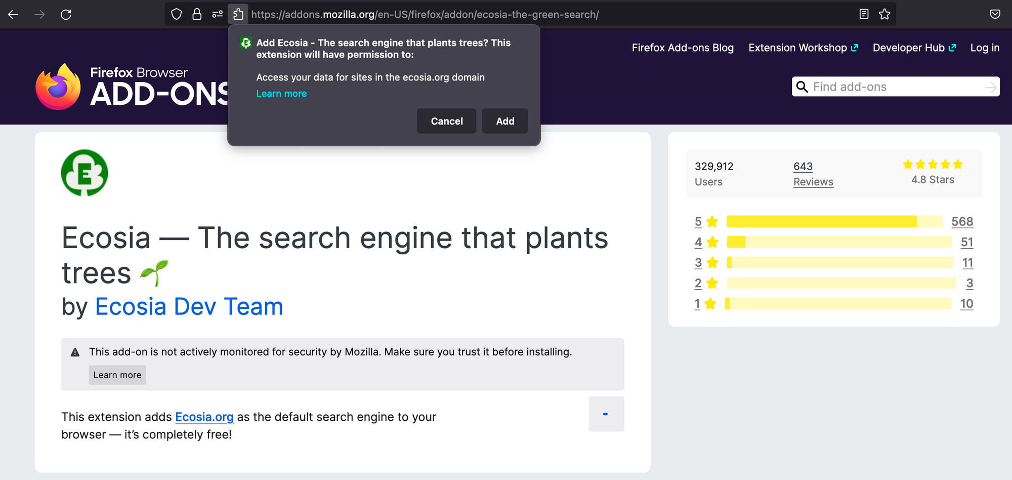 Next, add https://ecosia.org and click on Add.