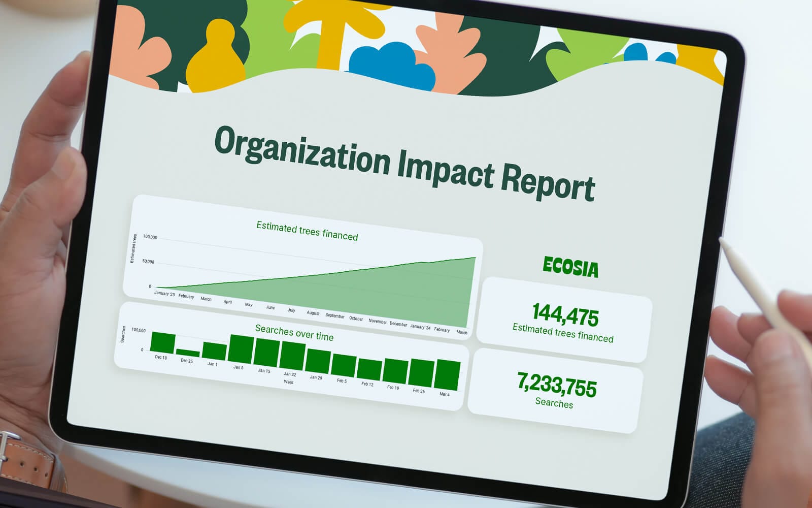 For all of our support materials for companies including our Impact Calculator, case studies and steps for small organizations, please visit the Ecosia for Companies page and get your team started on making a difference in the world today.