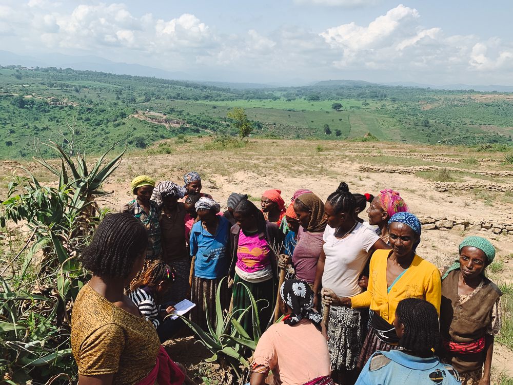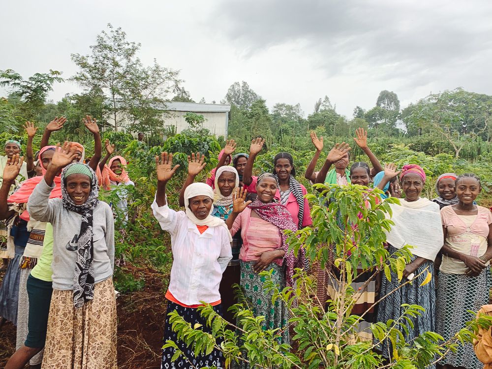 The next day, five women's groups came together to plant trees on a huge nearby site, Adame. There we saw our friend Almaz; a coffee farmer who leads one of the women's groups, and thanks to your trees, her yield improves each year.