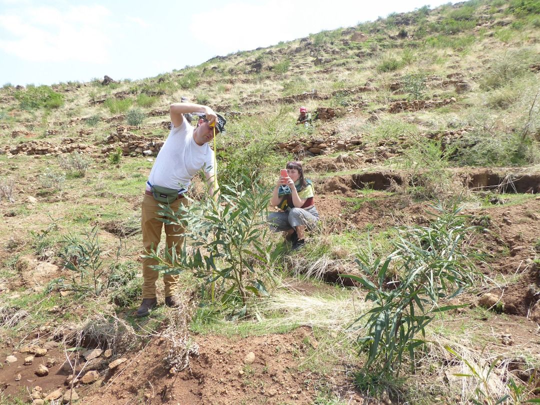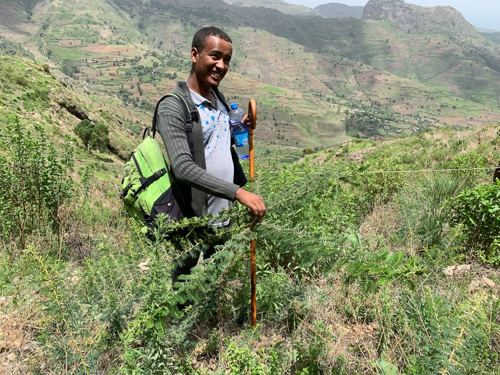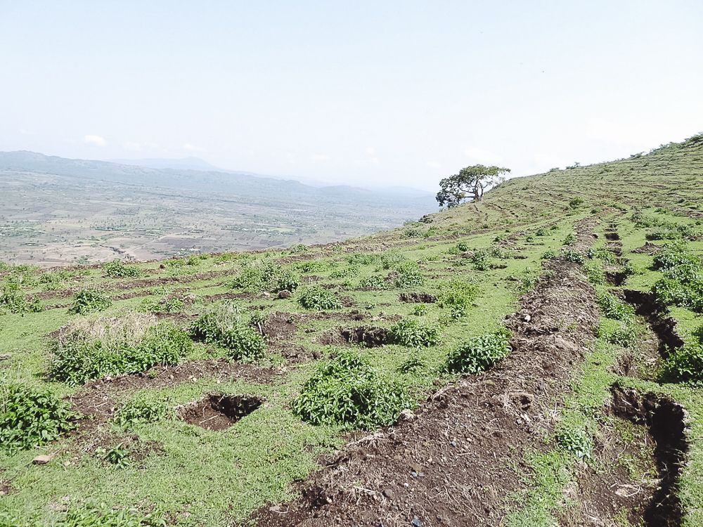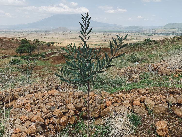 We began planting native acacia trees on the surrounding mountain slopes a year ago with our partner Green Ethiopia in stone basins that retain water. Thanks to this clever technique, these trees are already a meter tall. These hardy 'desert' species can survive harsh conditions and even grow spikes to protect themselves from wild animals.