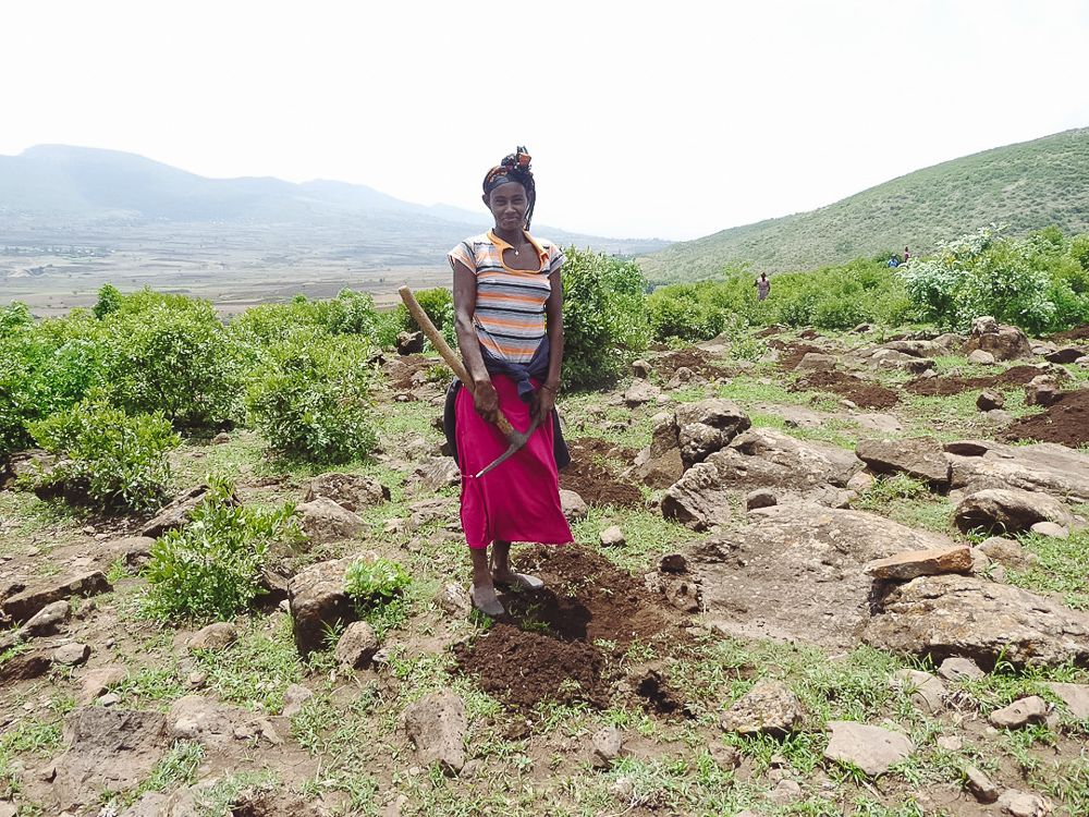 On the other side of the mountain, we met a group of women who are preparing the land for the next round of tree planting. Farmers no longer let their cattle graze in this area, allowing the soil to regenerate. Soon, many more trees will grow here without our help. The healing effects of the new trees were clear: we saw grass growing in the gullies and small pools of water returning. Slowly but surely, attitudes are shifting, too.
